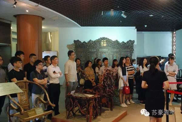 活動歷時半天,團員青年先跟隨講解員的步伐,參觀了藝術館館藏珍寶。從刺繡絲織民俗館到紅木雕刻家具館再到玉石陶瓷漆器館、字畫館等。現場的年輕同事很多都是第一次看到如此眾多的珍寶,被工藝精品的藝術魅力深深折服。